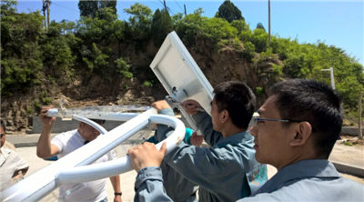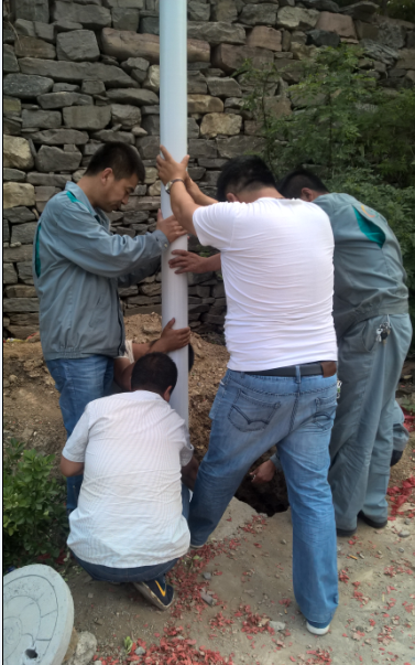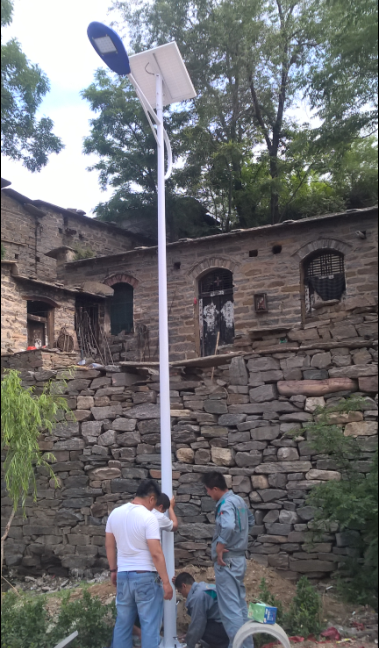 我們的同事們頂著著午間大太陽,積極為村民安裝太陽能路燈。