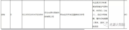 內(nèi)丘縣2019年度清潔取暖【空氣源熱泵、熱風機1拖2、遠紅外取暖器、蓄熱式電暖器(固體、液體)】采購項目入圍項目中標公告出爐,河北光源太陽能科技有限公司憑借強大的品牌實力、過硬的產(chǎn)品質量以及親民的售后服務榮登榜單。入圍產(chǎn)品為:蓄熱式電暖器(液態(tài))。